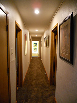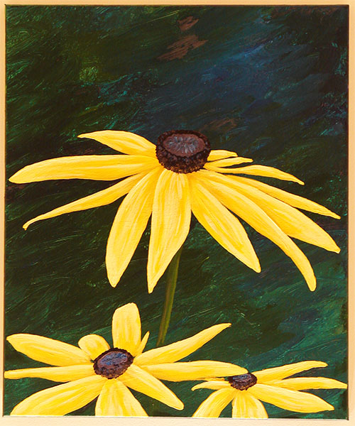 I wanted some artwork to brighten up the end of a long hallway in our new house. I painted these acrylics in 2014, the first artwork produced in our new house.