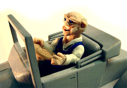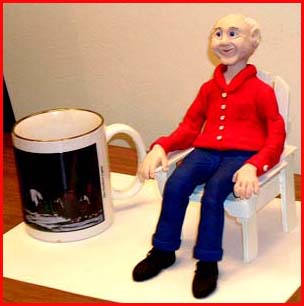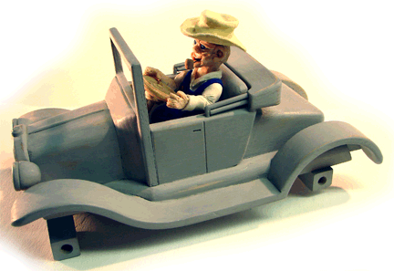 The car is a wooden model my Dad is working on (has since finished). His hobby is wood working. His old car need a driver, and "hinted" that a clay sculpture would work well here. This one was a challenge bacause the old guy driving the car is about half the normal size of clay sculpture figures.