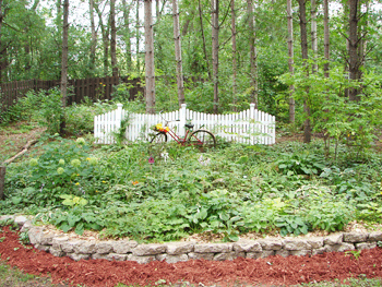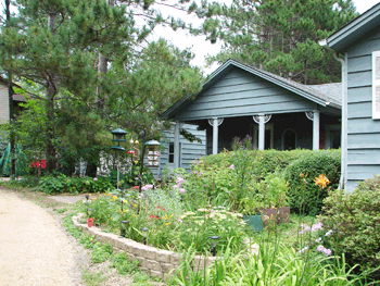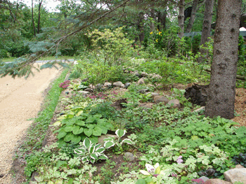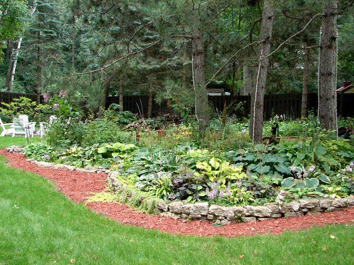 Joy completely rebuilt the garden by the driveway in 2009. She discovered a ton of rocks (literally) buried under just a little dirt. It is now a nice rock garden with a varity of shrubs and hostas.