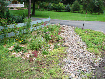 Another 2009 project was a rain garden and dry stream where there used to be a scrubby ditch.
