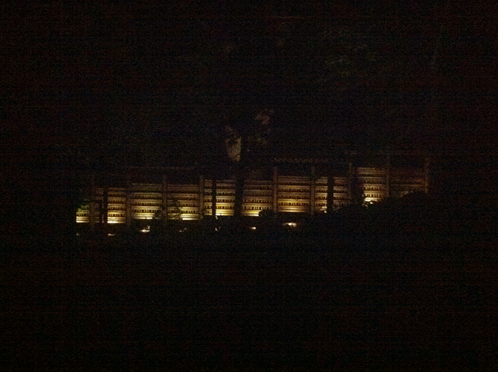 We added one last feature in the spring of 2016 - LED spot lights to light up the trellis panels at night. It looks way more cool at night than this picture can show. Believe it or not, those are only 1 watt lights! LED lighting is awesome! These lights are on a sensor switch to come on automatically at dusk and turn off at dawn (or a few hours after dusk).
