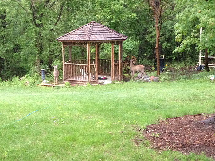 We hung fence wire across the front to keep deer out, without creating much of a visual barrier that would ruin the view.