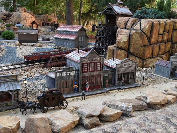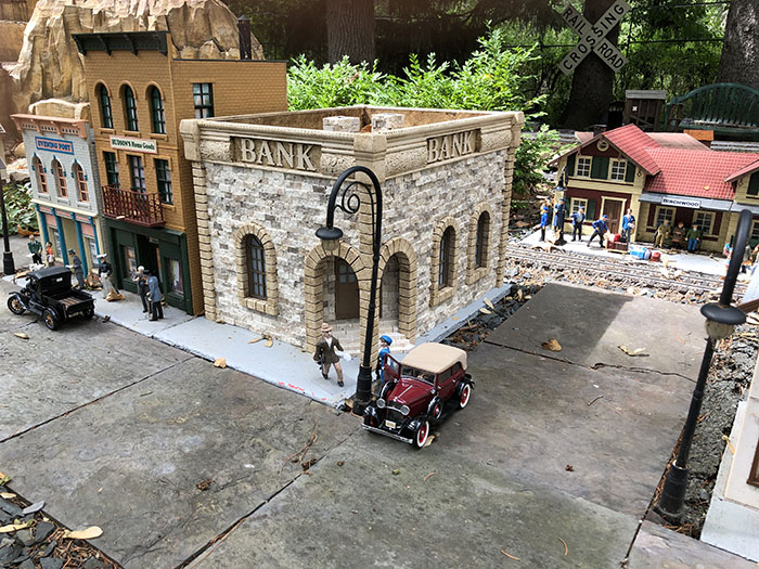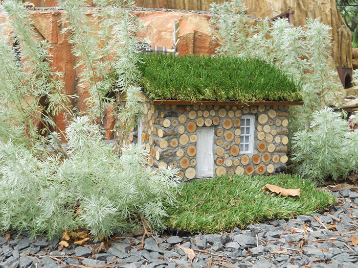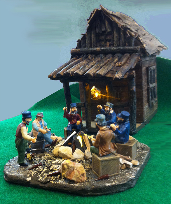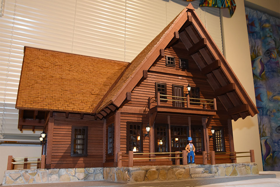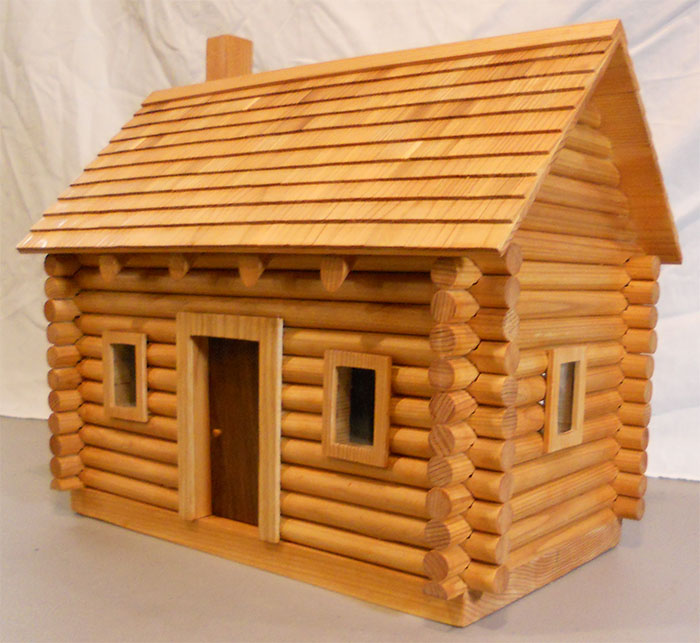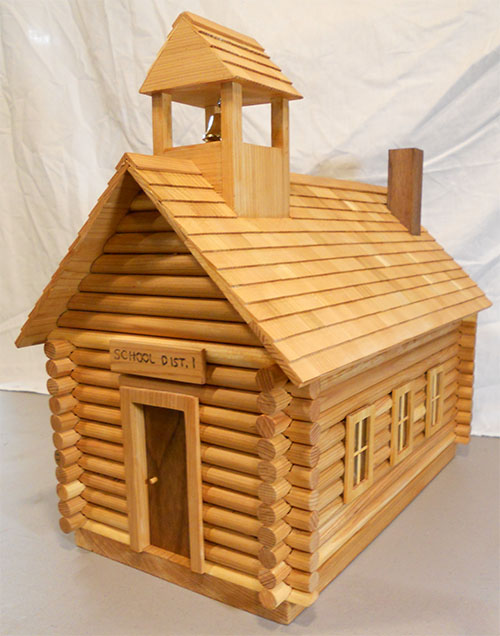 Dad fabricated every log and cut every one to fit just like building a real log building. He also hand cut each of the little cedar shakes on the roof of each building. There are about 240 shakes on the log cabin, and about 480 on the school house.