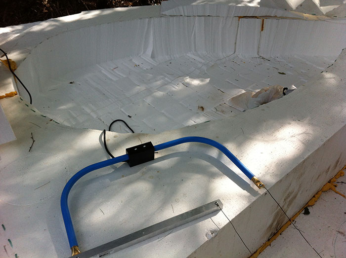The plan was to have miniature trees growing on the tops of the mountains. After contemplating a few possibilities, I decided the best way to go about this was to sort of turn the mountains into really big flower pots. I started by carving out the cavities where dirt would go. I used the industrial strength hot wire router to dig these holes in the foam.