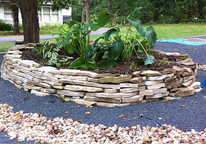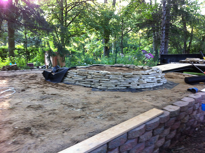 My original plan was to make a small "hill" to use excess fill dug up from the ponds. That pile grew way bigger than I anticipated. So I decided to go get a load of flagstone and create another garden instead.