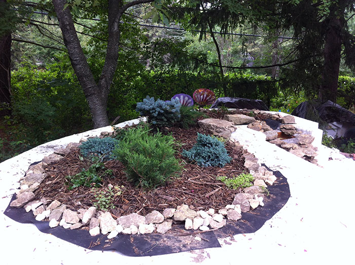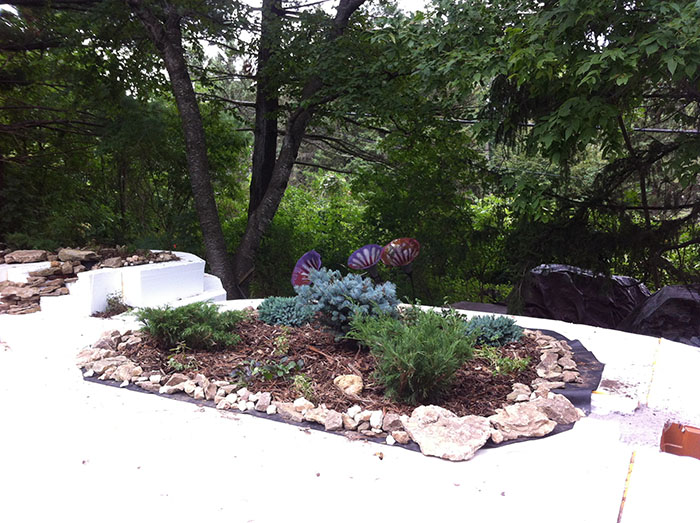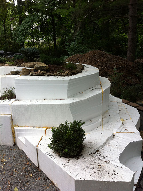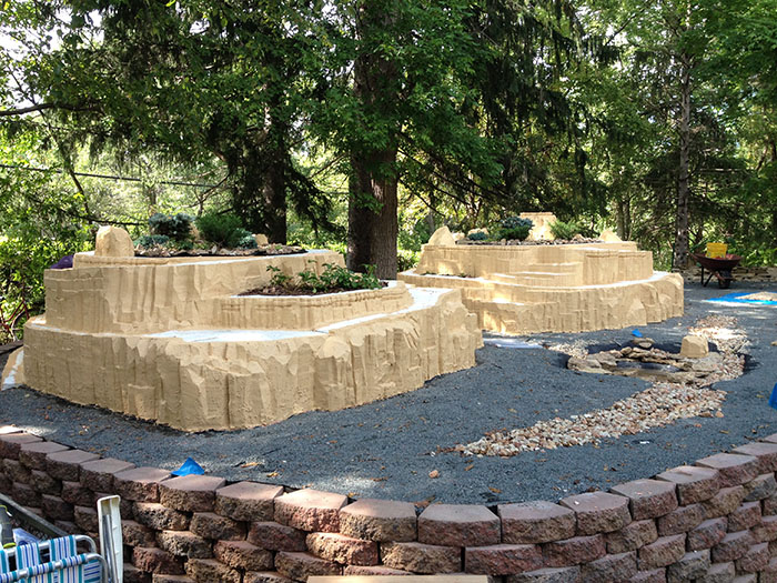 You will notice some larger rocks showed up in the rock border around the top gardens. Those are made of foam. Once the color highlights are added, you won't tell them apart from the natural rock (which all of the small stuff bordering the garden is).