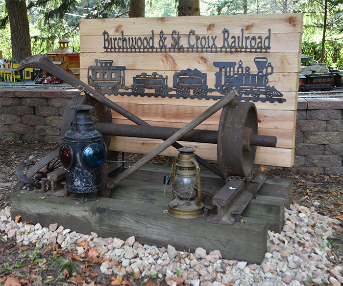 The garden railroad needed a "Welcome" centerpiece. I was just getting started on a collection of stuff for a plan yet to be hatched when I happened to acquire a set of actual narrow gauge train wheels manufactured in 1911 by the Peteler Car Company in Minneapolis, along with a short piece of real track. These wheels had been raised from the bottom of White Bear Lake about 10 years ago. Speculation was that they were from the old trolley that ran from downtown St. Paul to White Bear Lake. My research did not show that the Peteler Car Company was involved in trolley cars. The more definitive clue that they are not trolley wheels is that these are narrow gauge (3’), and the St. Paul trolley ran on standard gauge (4’8”). Since we live right next to the old trolley line, it would have been fun to have actual trolley wheels, but I’m still happy to have real narrow gauge wheels since my layout models narrow gauge railroad.